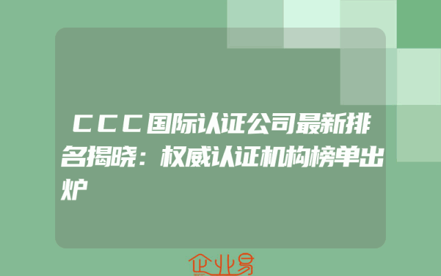 - CCC国际认证公司最新排名揭晓:权威认证机构榜单出炉