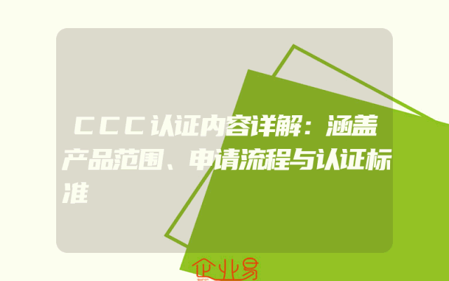 - CCC认证内容详解:涵盖产品范围、申请流程与认证标准