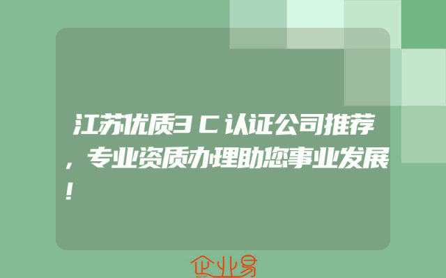 - 江苏优质3C认证公司推荐,专业资质办理助您事业发展!