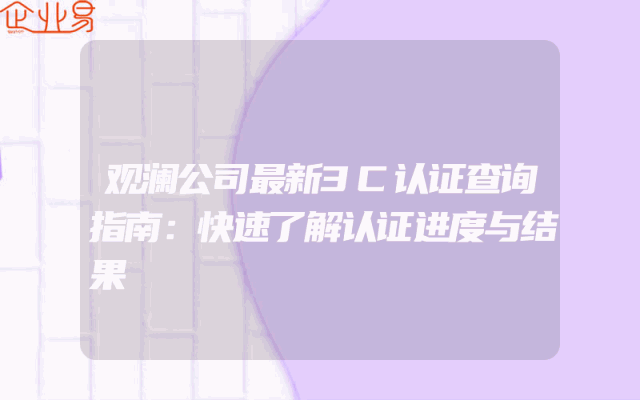 - 观澜公司最新3C认证查询指南:快速了解认证进度与结果