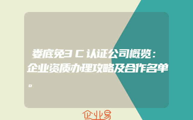 - 娄底免3C认证公司概览:企业资质办理攻略及合作名单。