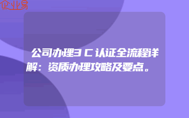 - 公司办理3C认证全流程详解:资质办理攻略及要点。