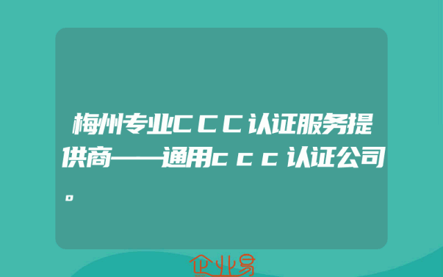 - 梅州专业CCC认证服务提供商——通用CCC认证公司一、了解CCC认证的重要性在中国市场,CCC认证(中国强制认证)对于任何企业来说都至关重要。作为质量管理和市场监管的关键环节,CCC认证是保证产品安全性和质量的重要手段。对于想要在竞