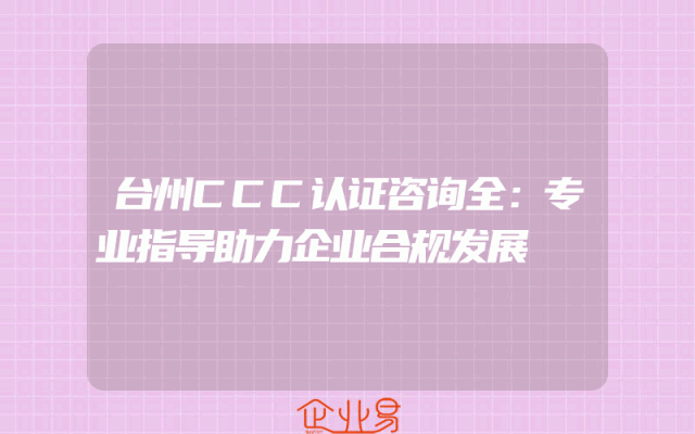 - 台州CCC认证咨询全:专业指导助力企业合规发展