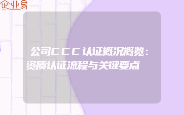 - 公司CCC认证概况概览:资质认证流程与关键要点