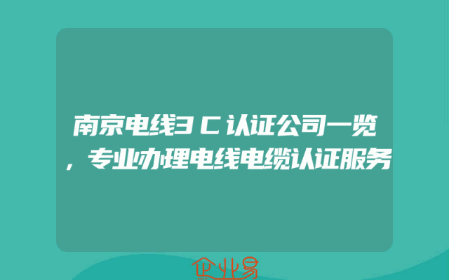- 南京电线3C认证公司一览,专业办理电线电缆认证服务