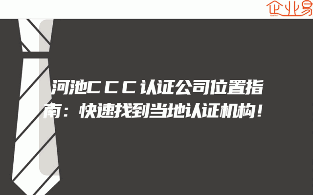 - 河池CCC认证公司位置指南:快速找到当地认证机构!