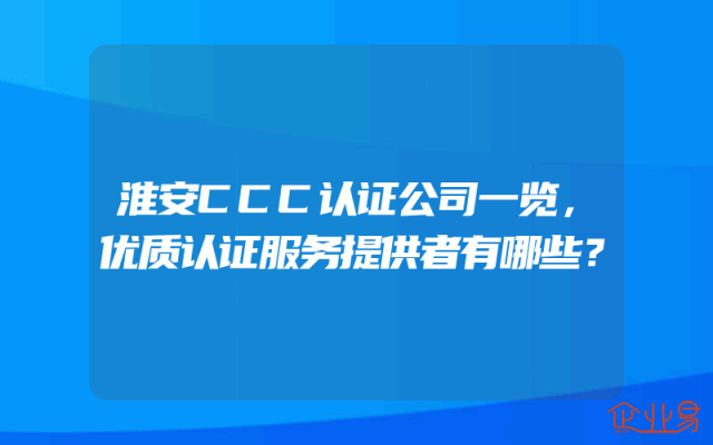 - 淮安CCC认证公司一览,优质认证服务提供者有哪些?