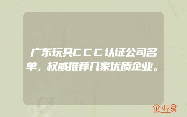 - 广东玩具CCC认证公司名单,权威推荐几家优质企业。