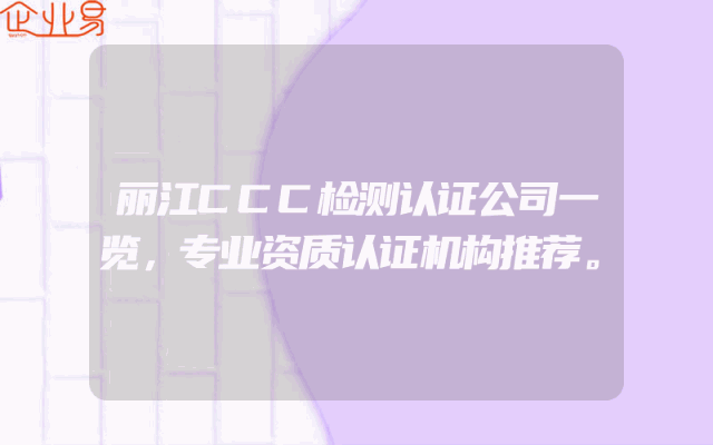 - 丽江CCC检测认证公司一览,专业资质认证机构推荐。