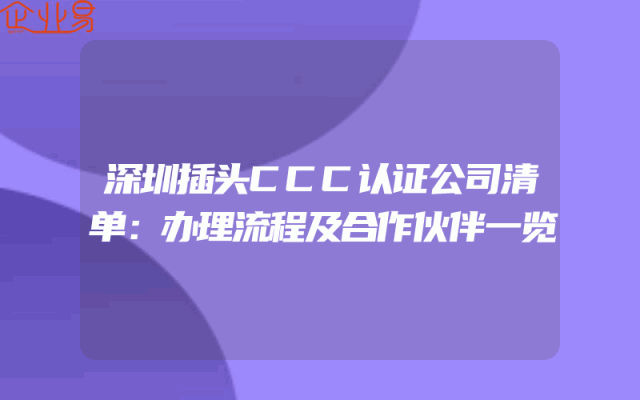 - 深圳插头CCC认证公司清单:办理流程及合作伙伴一览