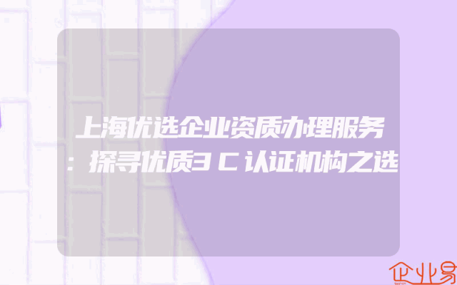 - 上海优选企业资质办理服务:探寻优质3C认证机构之选