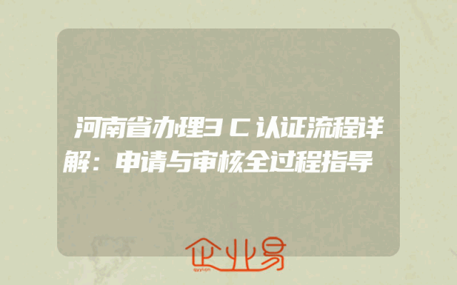 - 河南省办理3C认证流程详解:申请与审核全过程指导
