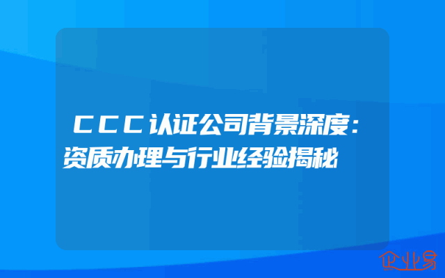 - CCC认证公司背景深度:资质办理与行业经验揭秘