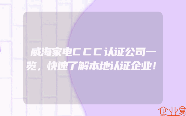 - 威海家电CCC认证公司一览,快速了解本地认证企业!