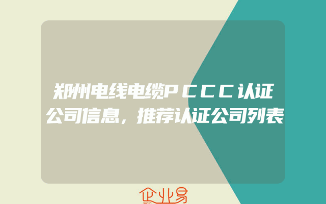 - 郑州电线电缆PCCC认证公司信息,推荐认证公司列表
