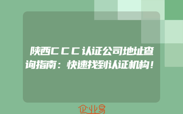 - 陕西CCC认证公司地址查询指南:快速找到认证机构!