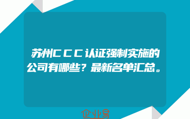 - 苏州CCC认证强制实施的公司有哪些?最新名单汇总。