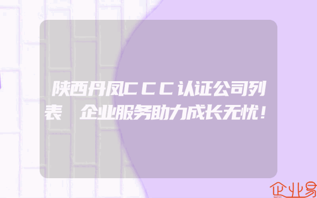 - 陕西丹凤CCC认证公司列表 企业服务助力成长无忧!