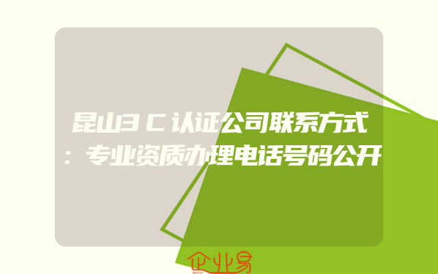 - 昆山3C认证公司联系方式:专业资质办理电话号码公开引言在如今日新月异的商业环境中,企业资质的重要性愈发凸显。无论是新成立的公司还是已经运营多年的企业,都需要不断地更新和完善自身的资质认证,以确保