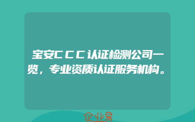 - 宝安CCC认证检测公司一览,专业资质认证服务机构。