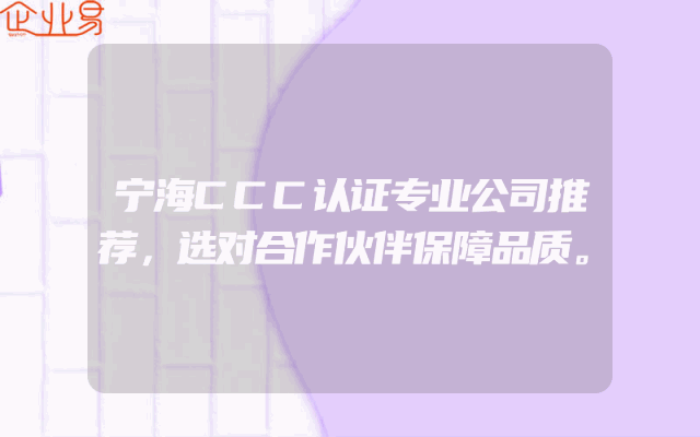- 宁海CCC认证专业公司推荐:选对合作伙伴,保障品质一、引言在中国经济蓬勃发展的当下,企业面临的竞争日趋激烈,产品和服务的质量成为企业生存发展的关键。作为制造业领域的重要组成部分,企业的品质认证至关重要。其中,CCC认证是中国政府为保护消费者