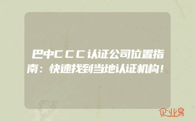 - 巴中CCC认证公司位置指南:快速找到当地认证机构!