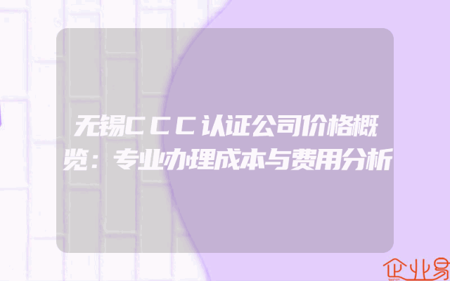 - 无锡CCC认证公司价格概览:专业办理成本与费用分析