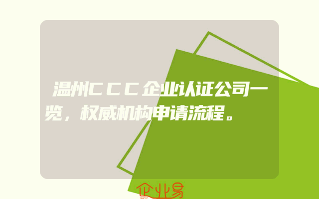 - 温州CCC企业认证公司一览,权威机构申请流程。