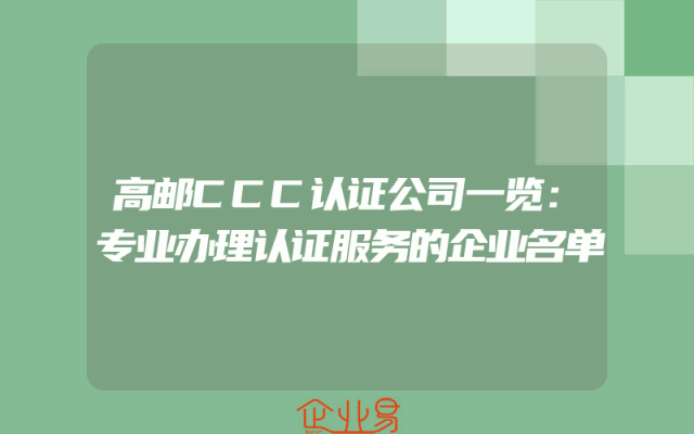 - 高邮CCC认证公司一览:专业办理认证服务的企业名单