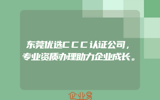 - 东莞优选CCC认证公司,专业资质办理助力企业成长。