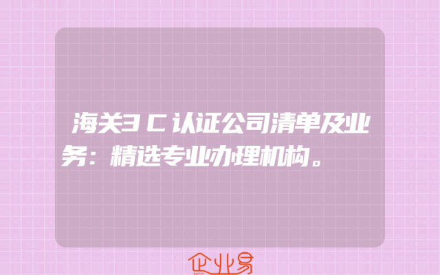 - 海关3C认证公司清单及业务:精选专业办理机构。
