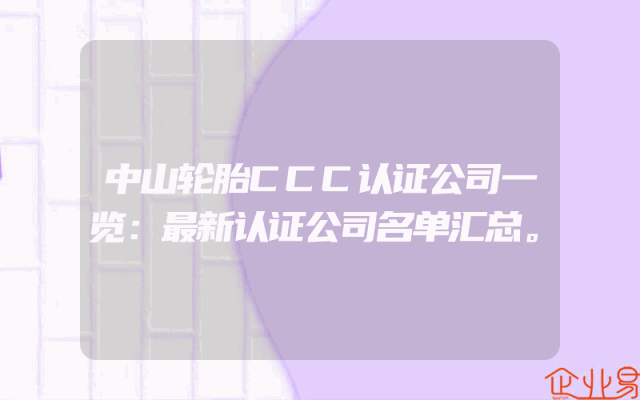 - 中山轮胎CCC认证公司一览:最新认证公司名单汇总。