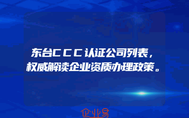 - 东台CCC认证公司列表:权威解读企业资质办理政策一、引言随着市场经济的发展,企业资质的重要性日益凸显。对于东台地区的企业而言,了解并适应最新的企业资质办理政策,是提升自身竞争力、拓展市场必不可少的环节。本文将基于东台CCC认证公司列表,对现
