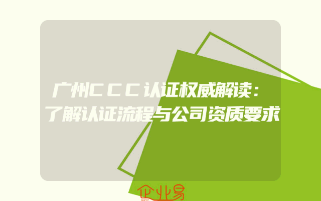- 广州CCC认证权威解读:了解认证流程与公司资质要求