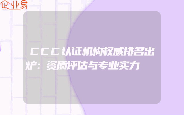 - CCC认证机构权威排名出炉:资质评估与专业实力解析一、背景介绍随着市场规范化程度的不断提高,企业在产品和服务方面所面临的竞争日益激烈。作为质量控制的标志性认证,CCC认证成为众多企业的必要门槛。作为行业内权威的专业服务机构,CCC认证机构在