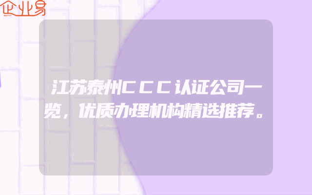 - 江苏泰州CCC认证公司一览,优质办理机构精选推荐。