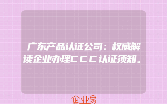 - 广东产品认证公司:权威解读企业办理CCC认证须知。