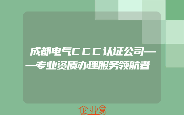 - 成都电气CCC认证公司——专业资质办理服务领航者