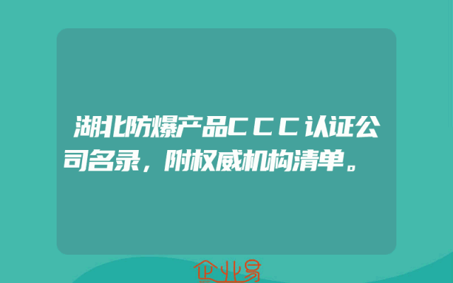 - 湖北防爆产品CCC认证公司名录,附权威机构清单。