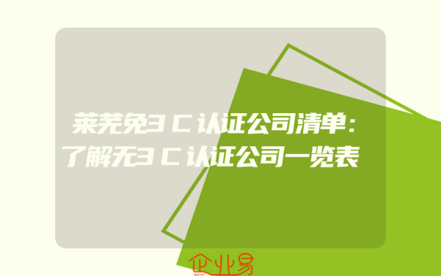 - 莱芜免3C认证公司清单:了解无3C认证公司一览表