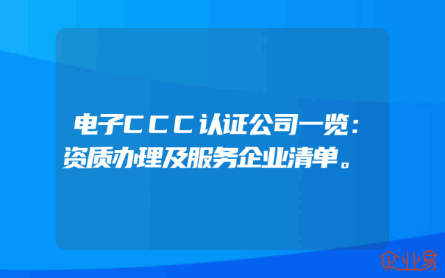 - 电子CCC认证公司一览:资质办理及服务企业清单。