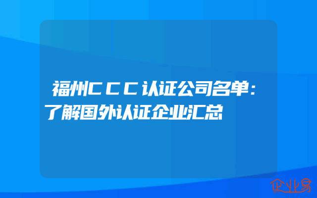- 福州CCC认证公司名单:了解国外认证企业汇总