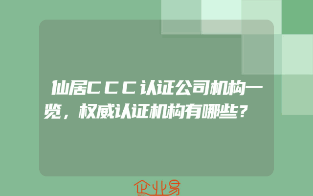 - 仙居CCC认证公司机构一览,权威认证机构有哪些?
