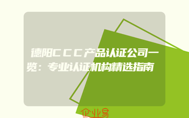- 德阳CCC产品认证公司一览:专业认证机构精选指南
