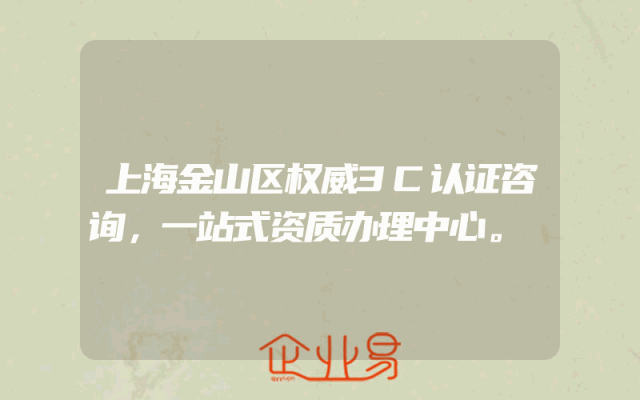- 上海金山区权威3C认证咨询,一站式资质办理中心。