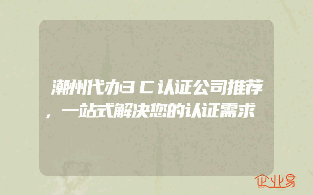 - 潮州代办3C认证公司推荐,一站式解决您的认证需求
