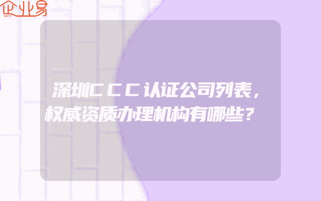 - 深圳CCC认证公司列表,权威资质办理机构有哪些?