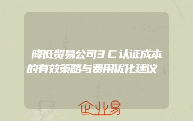 - 降低贸易公司3C认证成本的有效策略与费用优化建议