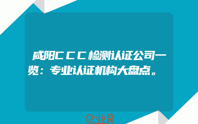 - 咸阳CCC检测认证公司一览:专业认证机构大盘点。